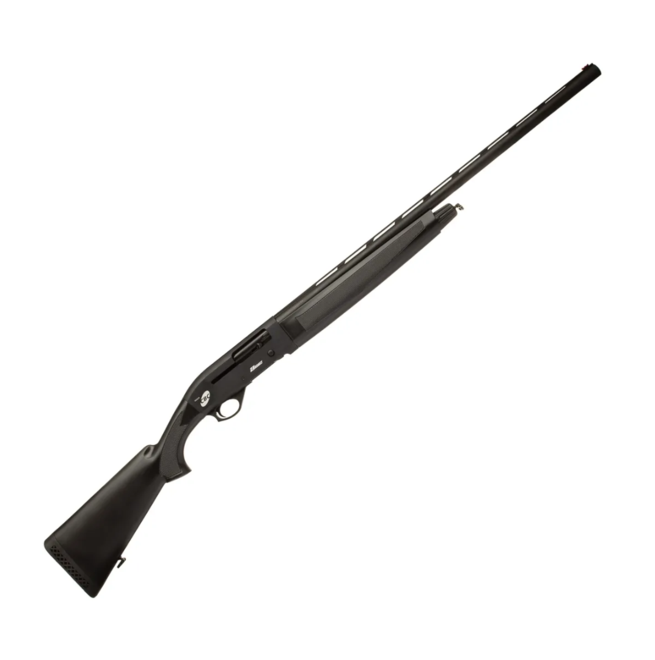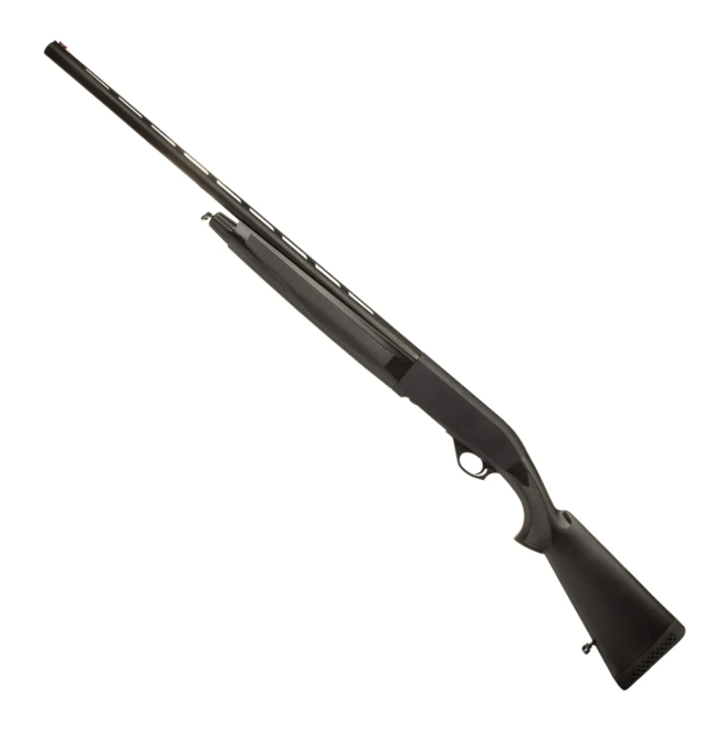 Calibre 12, cano de 24" com capacidade de 4+1 disparos, com banda ventilada, massa de mira com fibra óptica, coronha e telha em polímero, receptáculo em alumínio de alta resistência com alívio na janela para alimentação rápida, sistema tiro a tiro, trava de segurança e espaçador de soleira. Acabamento anodizado / oxidado negro.