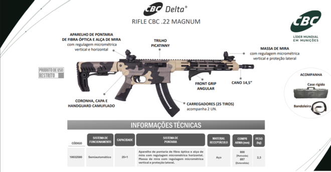 - RIFLE CBC DELTA 22WMR 14,5 25T EDICAO ESPECIAL
